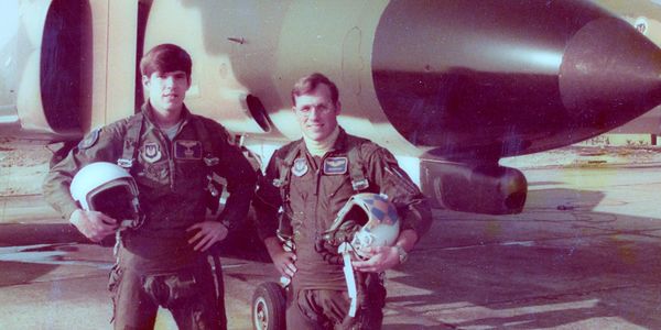 In the Air Force I was an F-4 Weapons Systems Officer (WSO). WSOs went through flight training as navigators, and since we flew in the back seat of the F-4, a fighter aircraft, we were called fightergators. I'm the kid on the right. Along with pilot "Torch" Ramsey, we were picking up a plane at the depot in Madrid, Spain, to fly back to Hahn Airbase, GE.
